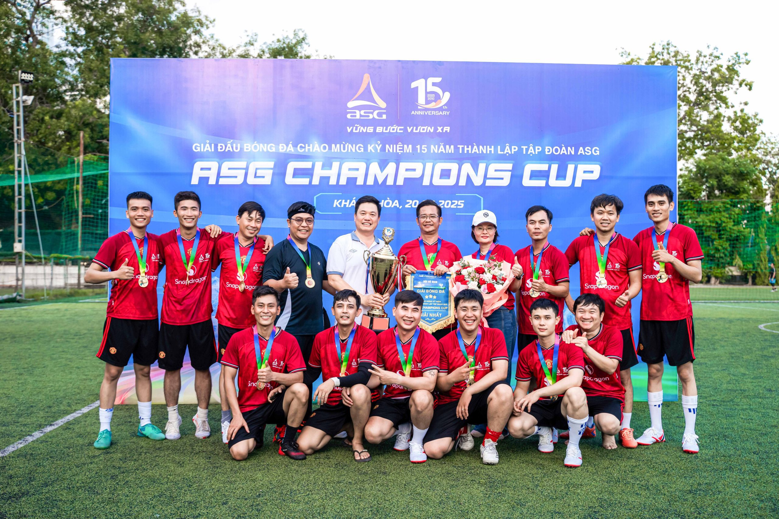 Ngày 20/09/2025, trong không khí hân hoan kỷ niệm 15 năm thành lập Tập đoàn ASG, giải thi đấu bóng đá ASG Champions Cup 2025 đã diễn ra sôi động với những trận cầu kịch tính, đầy ắp cảm xúc. Từ công tác tổ chức đến tinh thần thi đấu và cổ vũ đều thể hiện rõ nét văn hóa gắn kết và fairplay quyết tâm vươn lên của đại gia đình ASG.