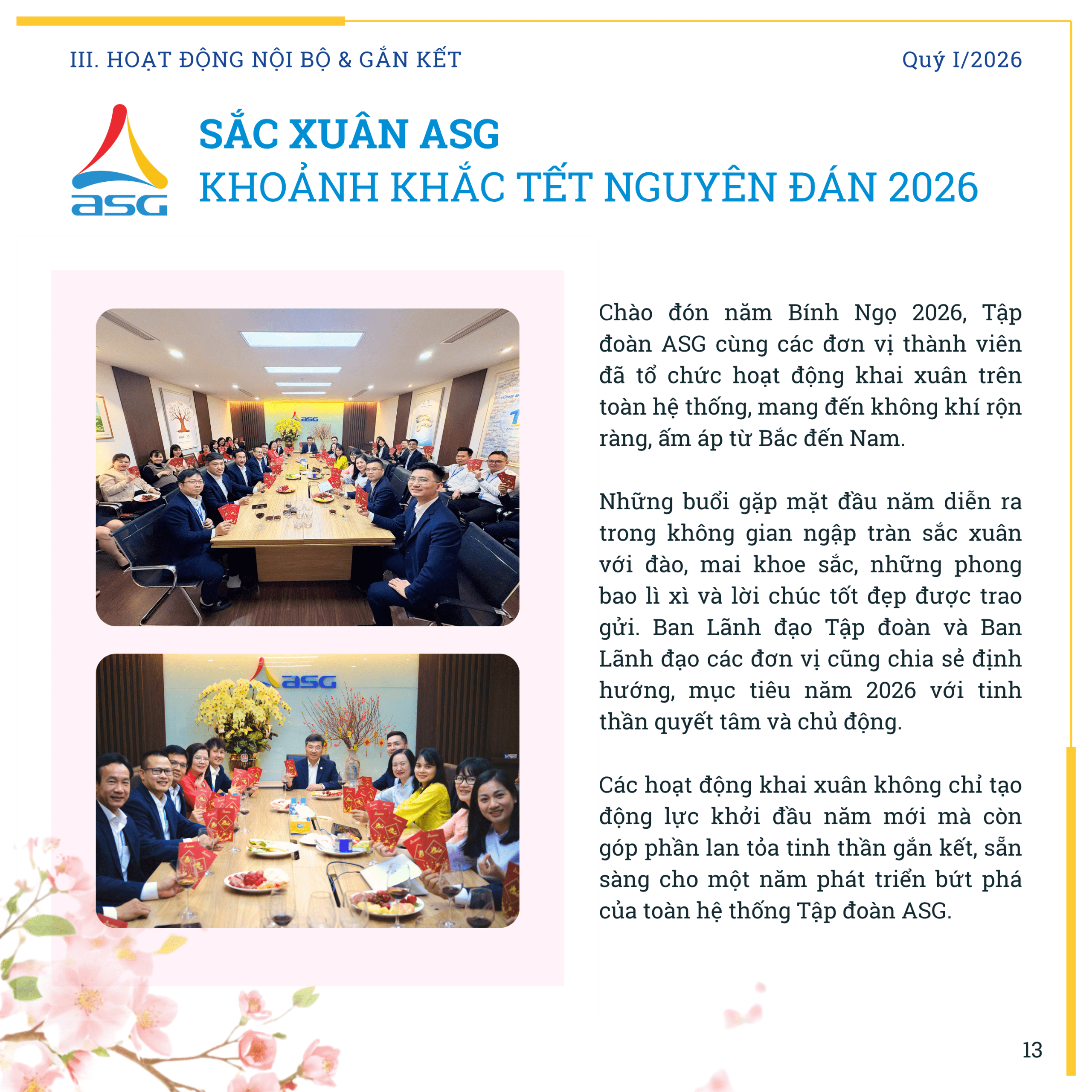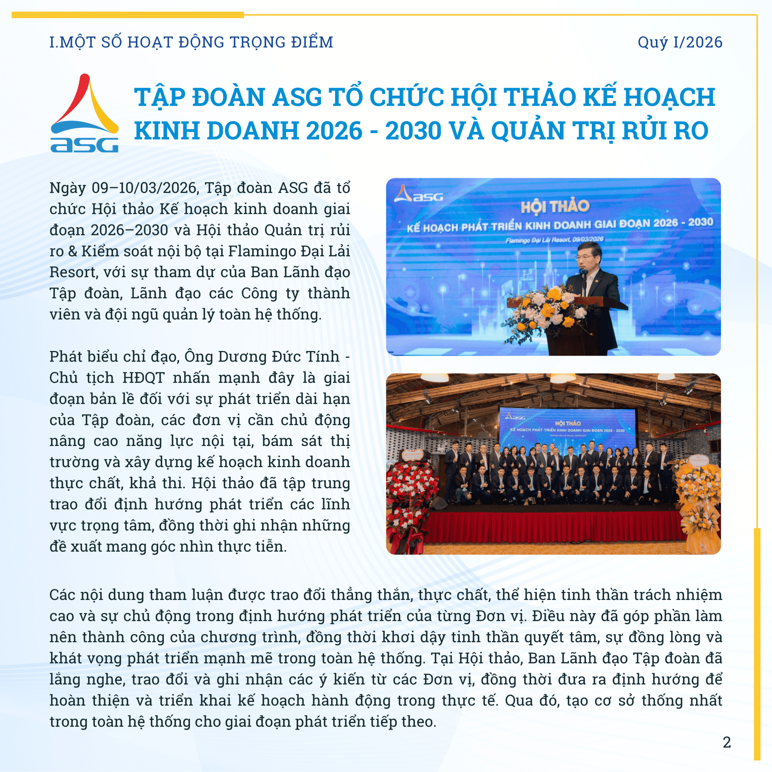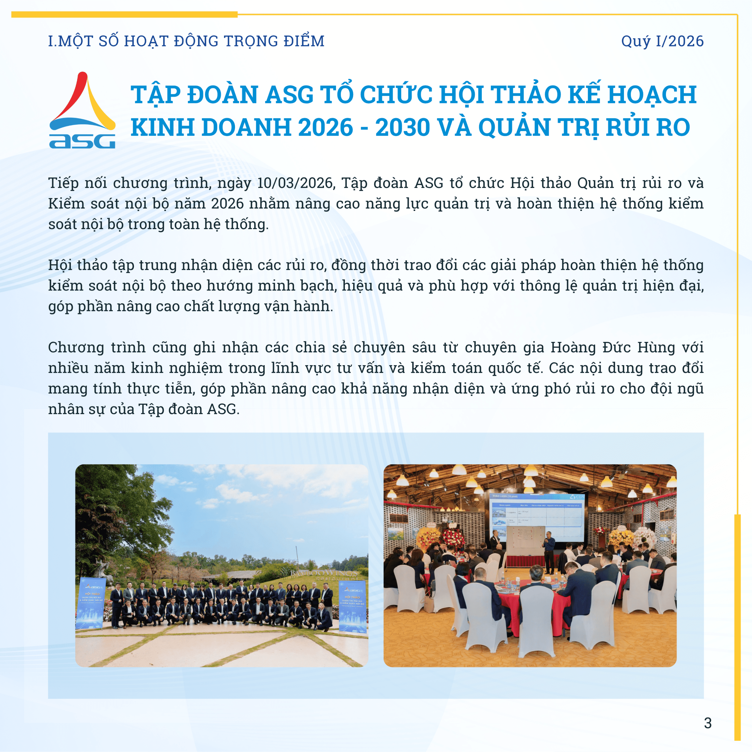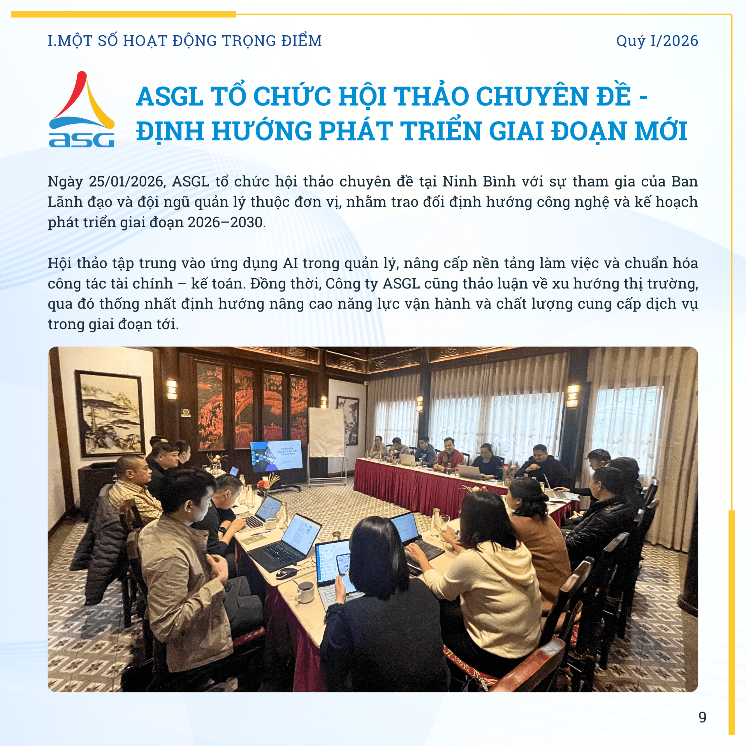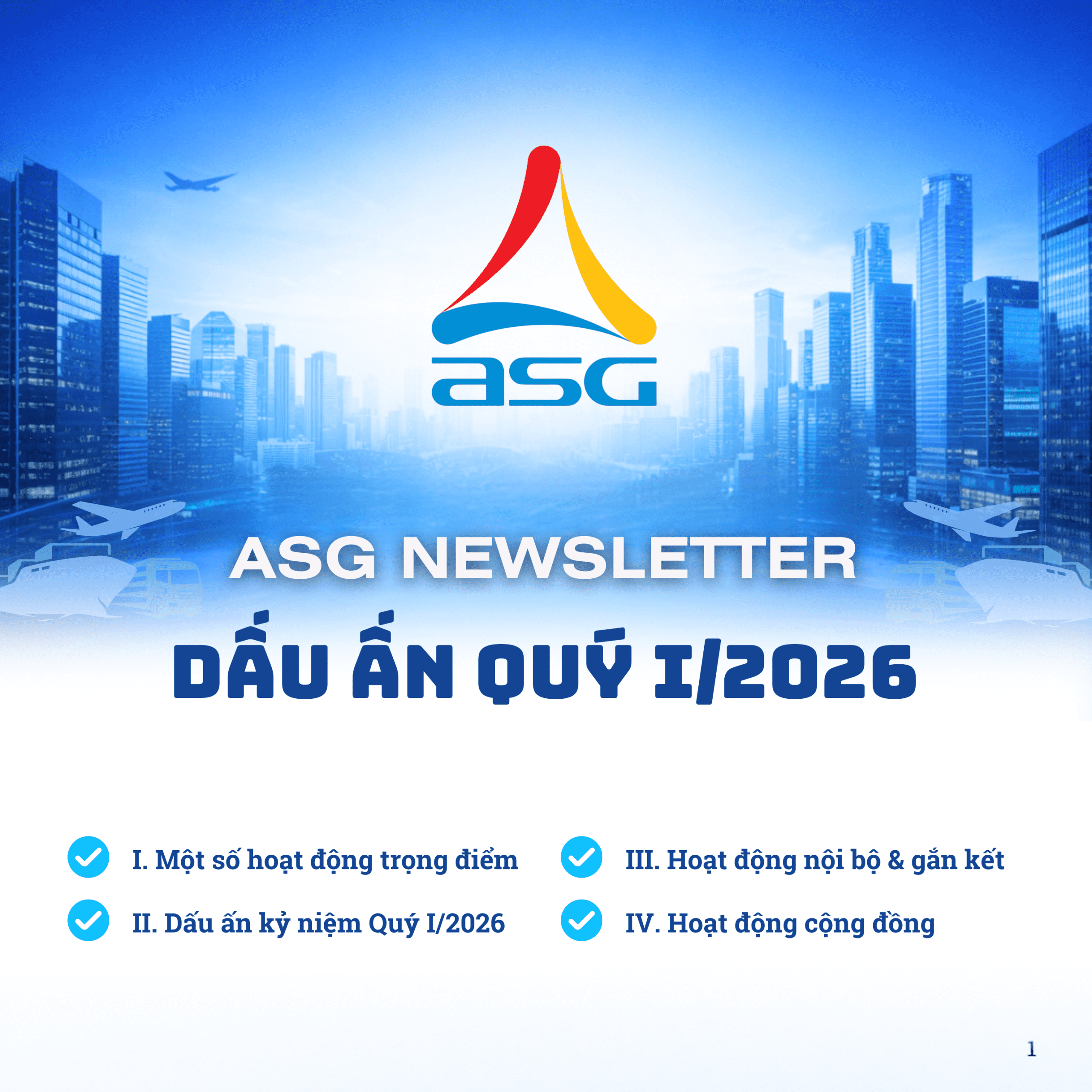 ASG Newsletter – DẤU ẤN QUÝ I/2026 Đăng ngày 15/04/2026 - Danh mục Bản tin nội bộ Bài viết cùng chủ đề:Xem tất cả ASG Newsletter – DẤU ẤN QUÝ IV/2025 03/02/2026 ASG Newsletter #2 – Mạnh mẽ – Quyết tâm – Chinh phục 23/08/2024 ASG Newsletter #1 – Số xuân Giáp Thìn 2024 05/02/2024