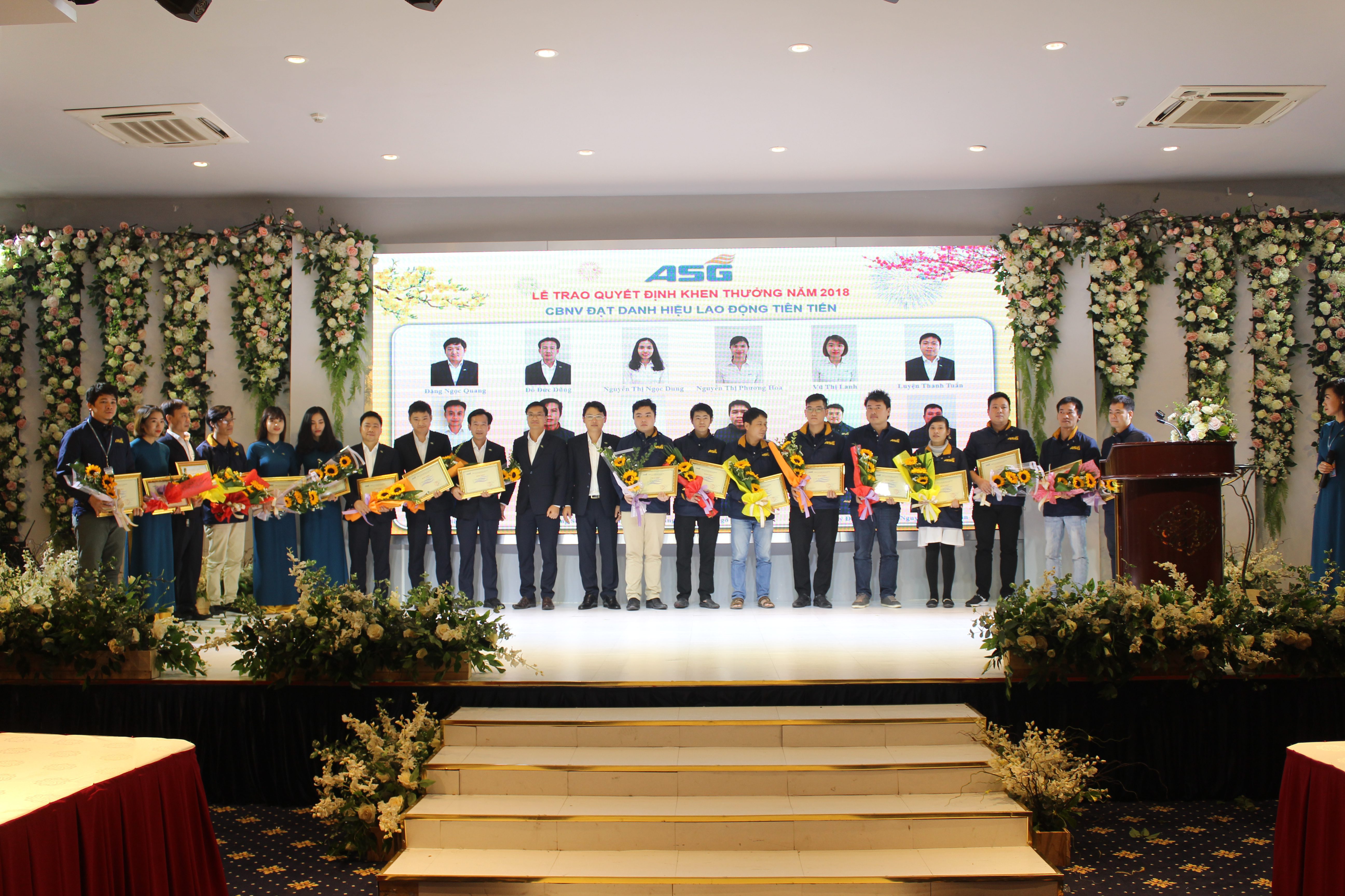 Nhằm ghi nhận sự cống hiến, nỗ lực của các tập thể, cá nhân đối với thành quả chung của ASG trong năm 2018, Công ty đã trao tặng nhiều danh hiệu thi đua khen thưởng cho các tập thể, cá nhân có thành tích nổi bật, được đánh giá cao trong năm 2018 kèm theo những phần thưởng giá trị.