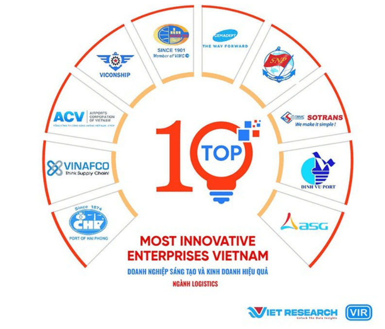 Viet Research phối hợp với Báo Đầu tư công bố Top 10 Doanh nghiệp Sáng tạo và Kinh doanh hiệu quả Việt Nam 2023 (Top 10 Most Innovative Enterprises Vietnam - VIE10) ngành logistics....